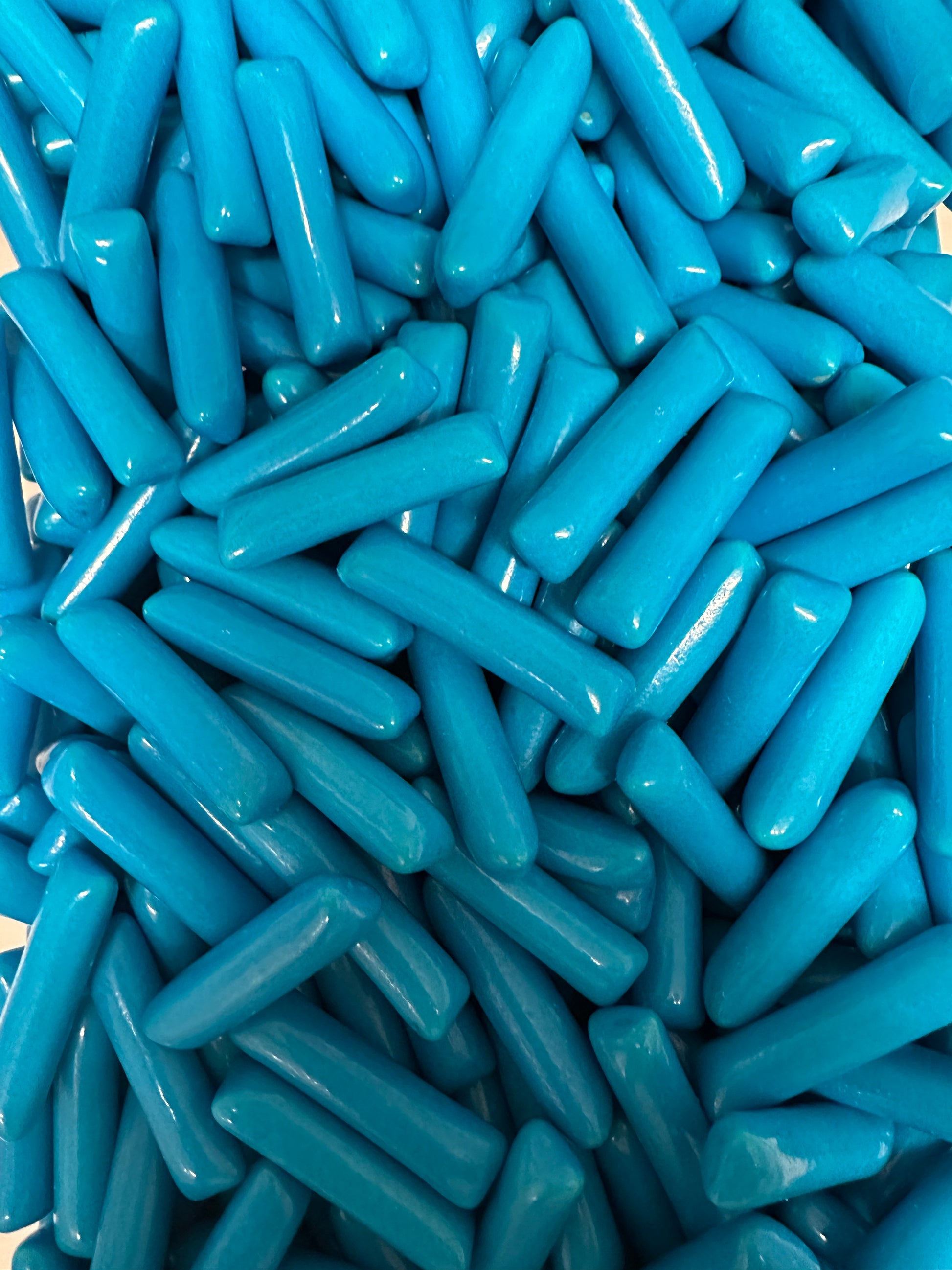 à base de concentrés (pomme, pêche, citron, fraise, framboise),gélatine*, stablilisant : gomme arabique ; amidon modifié, dextrose, acidifiants : acide lactique, acide citrique; arôme,émulsifiant : lécithines; colorants : bleu brillant FCF; agents d'enrobage : cire de carnauba, shellac, cire d'abeille blanche et jaune. *gélatine bovine - DDM garantie :+6 mois